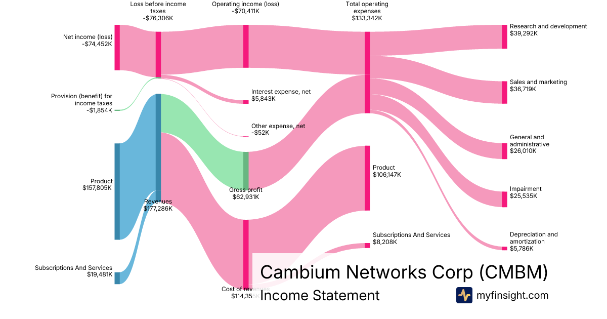 For the year ending 2024-12-31, CMBM made $177,286K in revenue. -$74,452K in net income. Net profit margin of -42.00%.