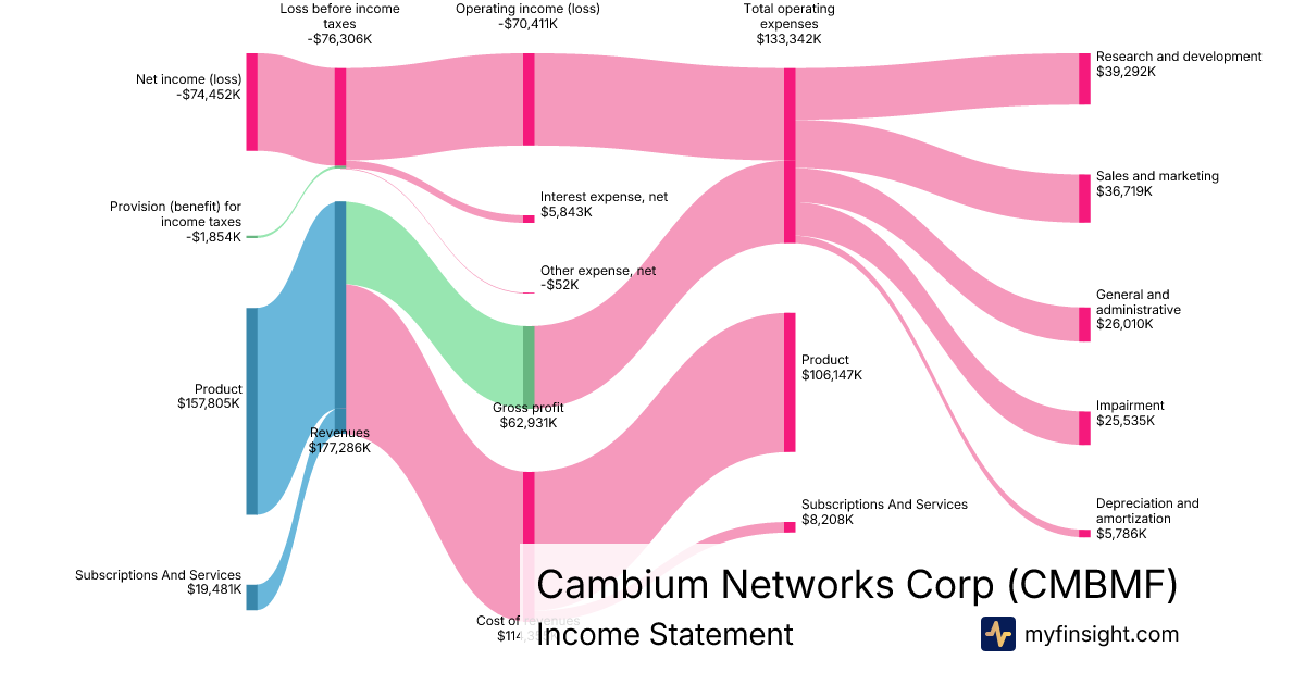 For the year ending 2024-12-31, CMBMF made $177,286K in revenue. -$74,452K in net income. Net profit margin of -42.00%.