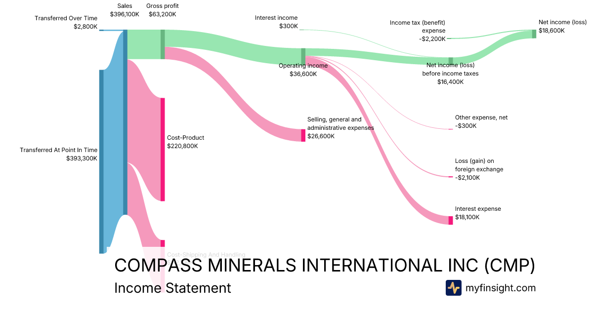 For the quarter ending 2025-12-31, CMP made $396,100K in revenue. $18,600K in net income. Net profit margin of 4.70%.