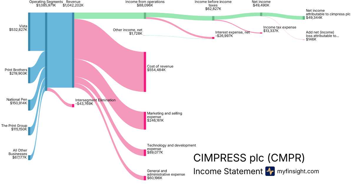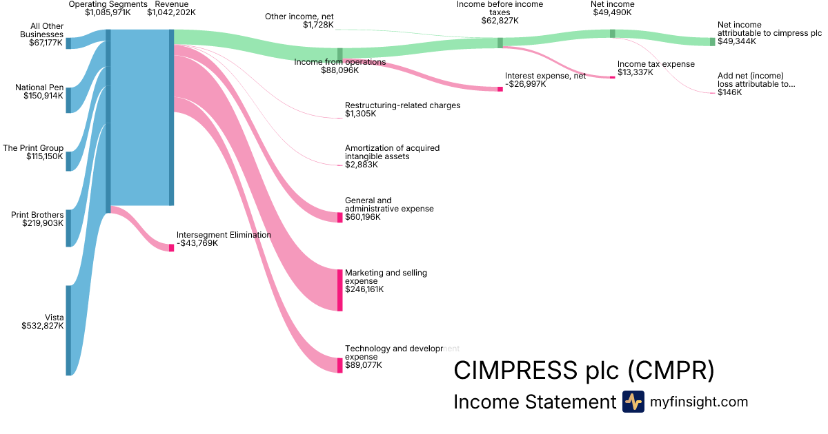 For the quarter ending 2025-12-31, CMPR made $1,042,202K in revenue. $49,344K in net income. Net profit margin of 4.73%.