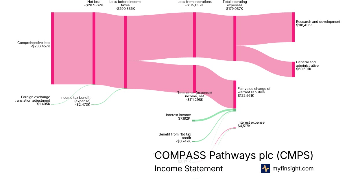 For the year ending 2025-12-31, CMPS made -$2,473K in revenue. -$286,457K in net income. Net profit margin of 11583.38%.