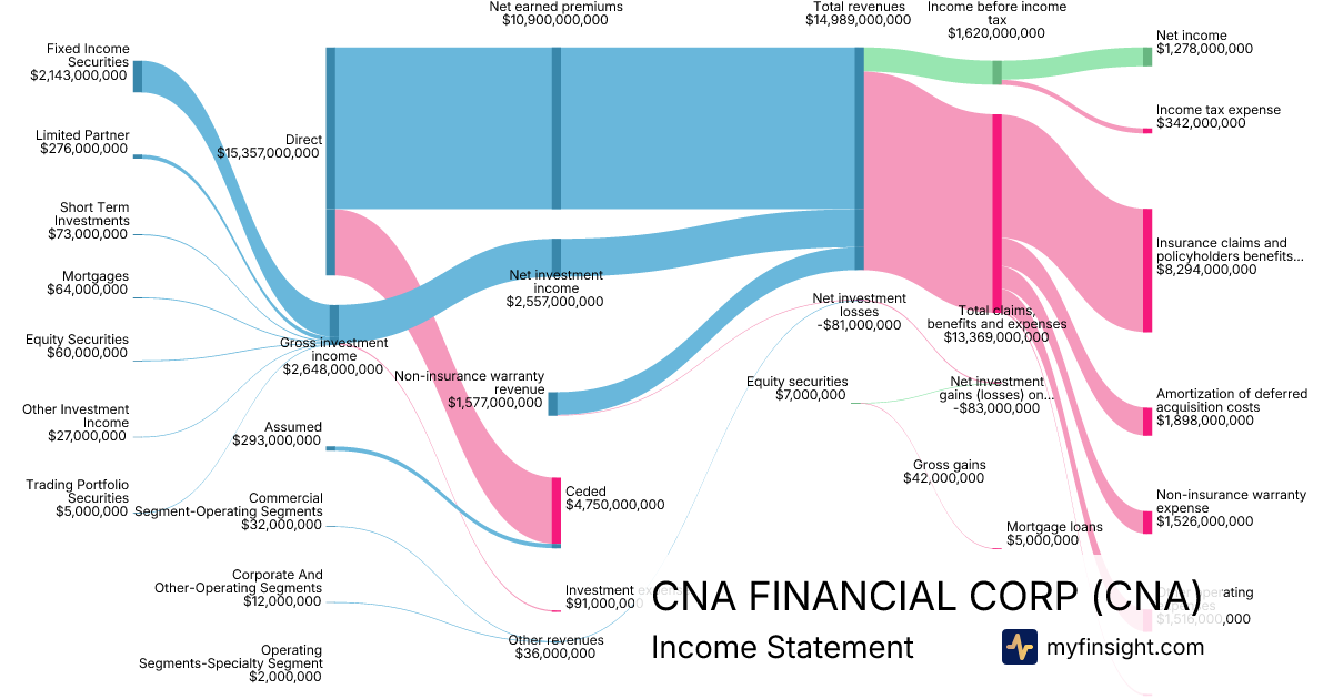 For the year ending 2025-12-31, CNA made $14,989,000,000 in revenue. $1,278,000,000 in net income. Net profit margin of 8.53%.