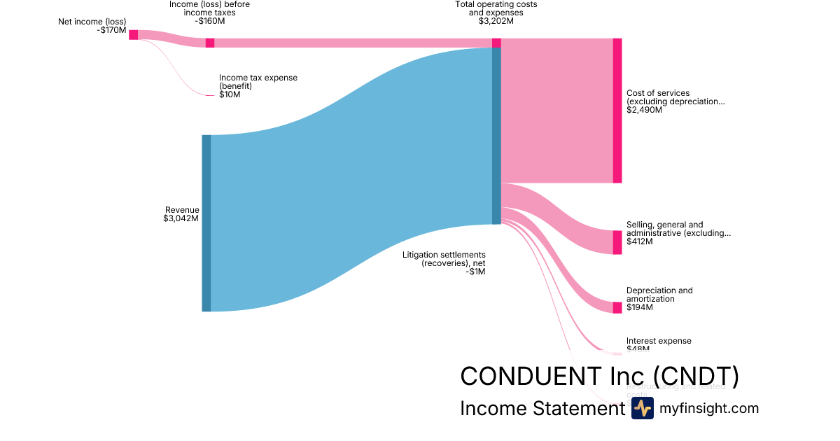 For the year ending 2025-12-31, CNDT made $3,042M in revenue. -$170M in net income. Net profit margin of -5.59%.