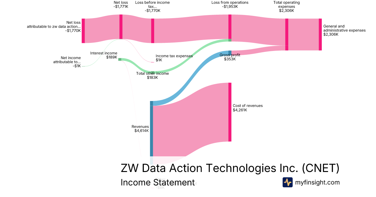 For the year ending 2025-12-31, CNET made $4,614K in revenue. -$1,770K in net income. Net profit margin of -38.36%.