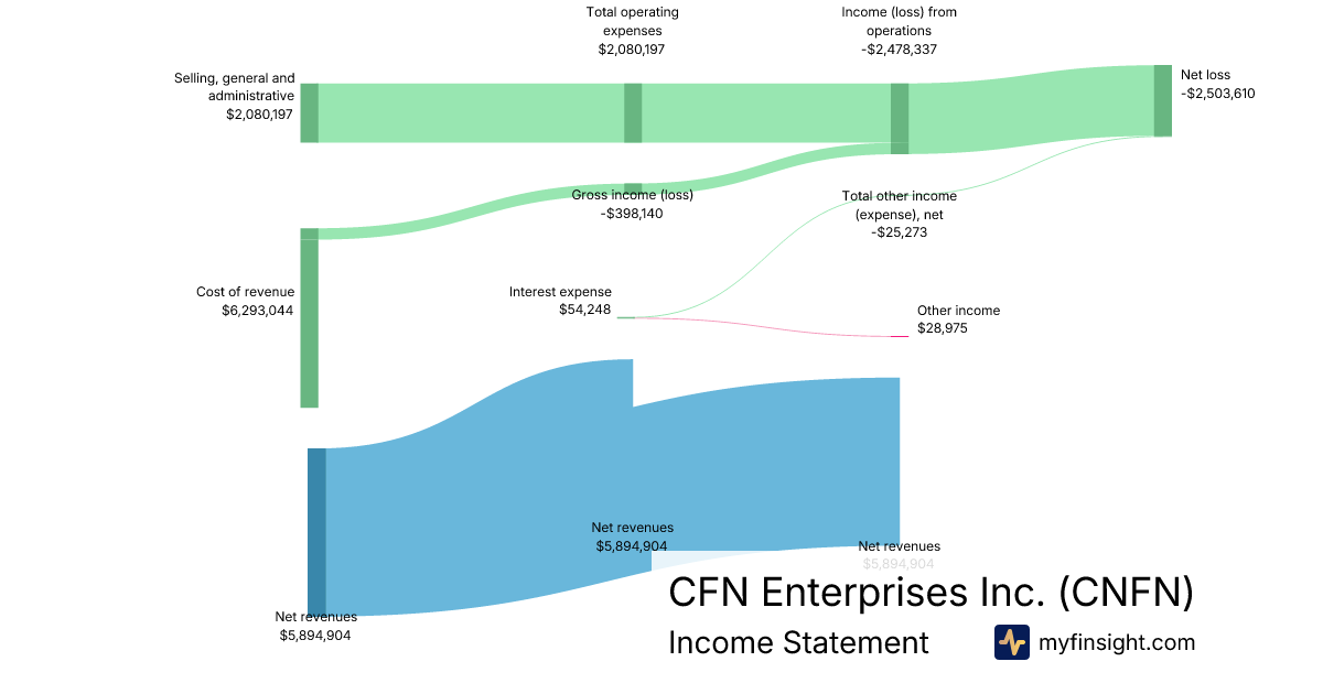 For the quarter ending 2025-03-31, CNFN made $5,894,904 in revenue. -$2,503,610 in net income. Net profit margin of -42.47%.