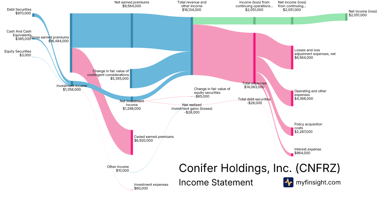 For the quarter ending 2025-06-30, CNFRZ made $16,134,000 in revenue. $2,051,000 in net income. Net profit margin of 12.71%.