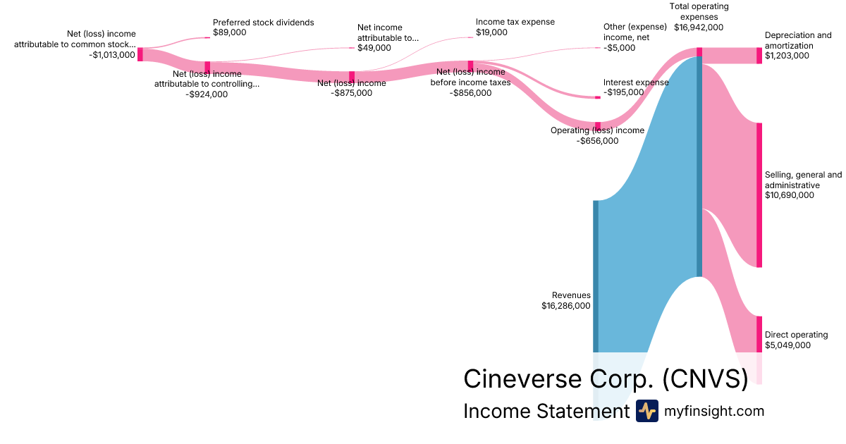 For the quarter ending 2025-12-31, CNVS made $16,286,000 in revenue. -$1,013,000 in net income. Net profit margin of -6.22%.