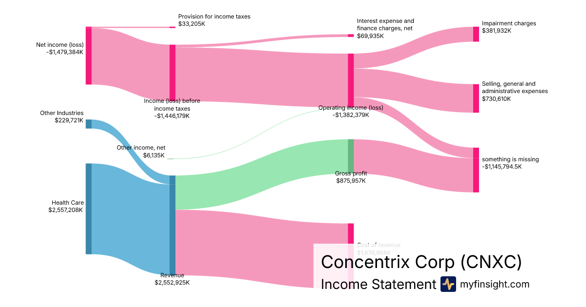 For the year ending 2025-11-30, CNXC made $9,825,771K in revenue. -$1,278,924K in net income. Net profit margin of -13.02%.