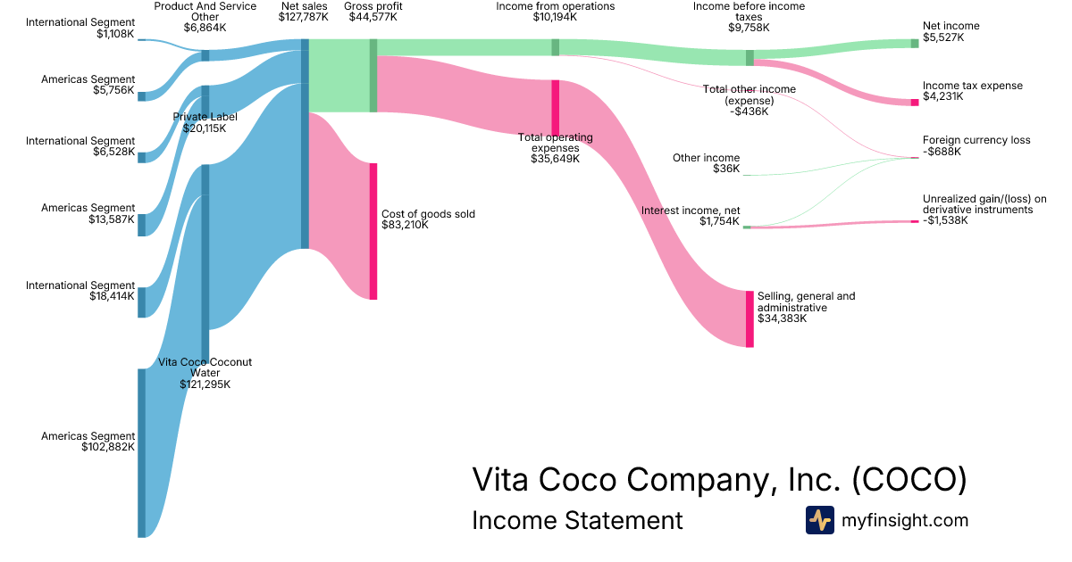 For the year ending 2025-12-31, COCO made $609,780K in revenue. $71,320K in net income. Net profit margin of 11.70%.