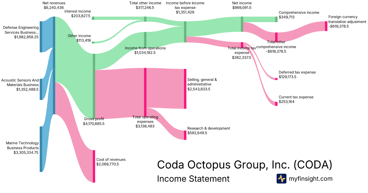 For the year ending 2025-10-31, CODA made $26,563,126 in revenue. $4,762,104 in net income. Net profit margin of 17.93%.
