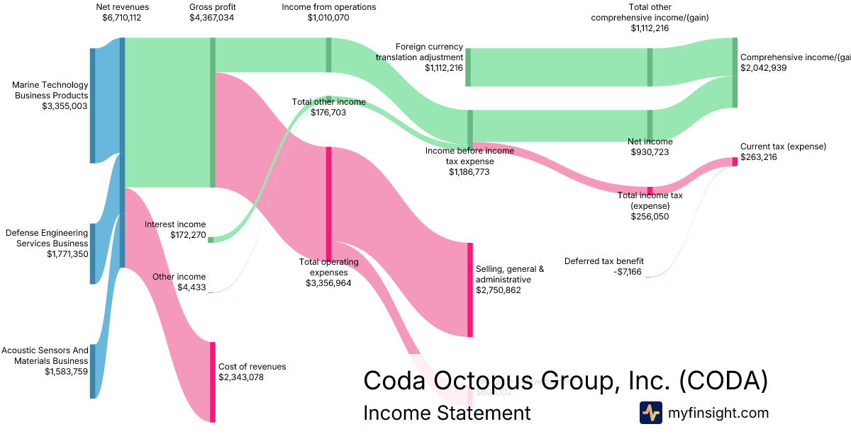 For the quarter ending 2026-01-31, CODA made $6,710,112 in revenue. $2,042,939 in net income. Net profit margin of 30.45%.