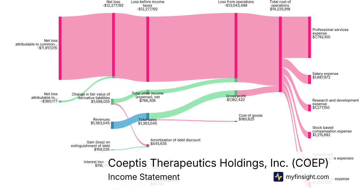 For the year ending 2025-12-31, COEP made $1,363,045 in revenue. -$11,917,015 in net income. Net profit margin of -874.29%.