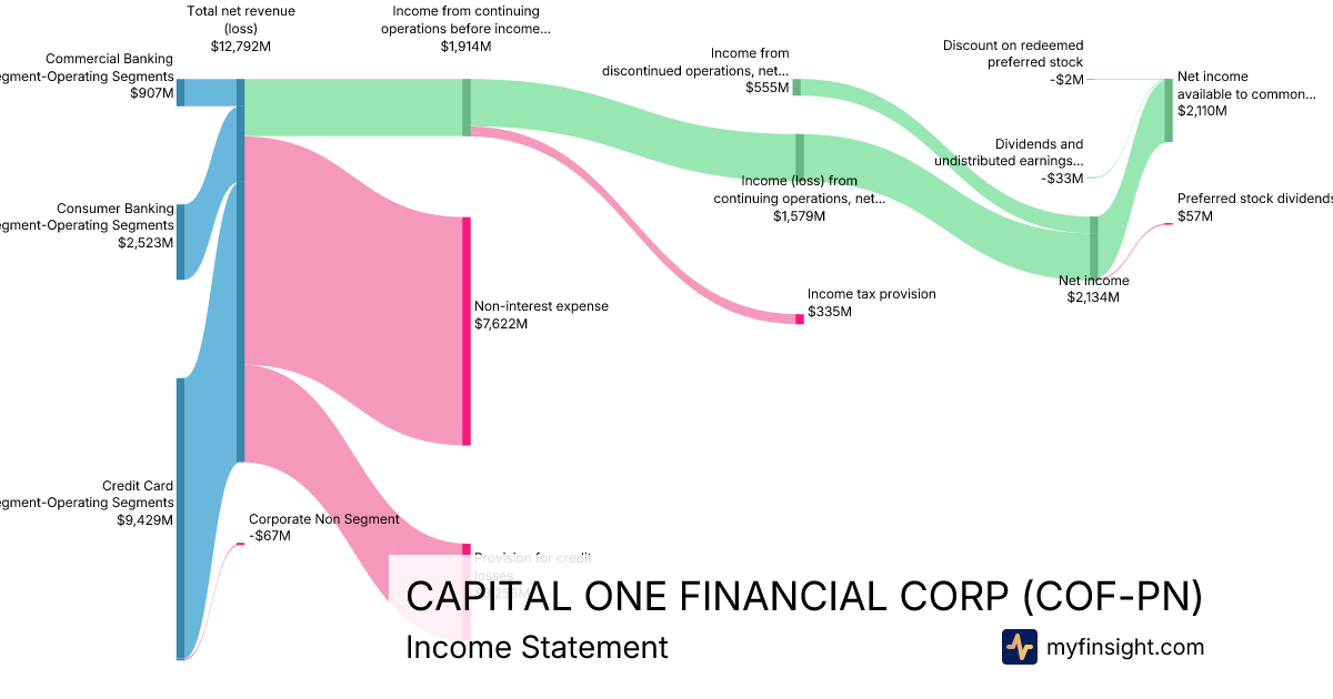 For the year ending 2025-12-31, COF-PN made $53,434M in revenue. $2,181M in net income. Net profit margin of 4.08%.