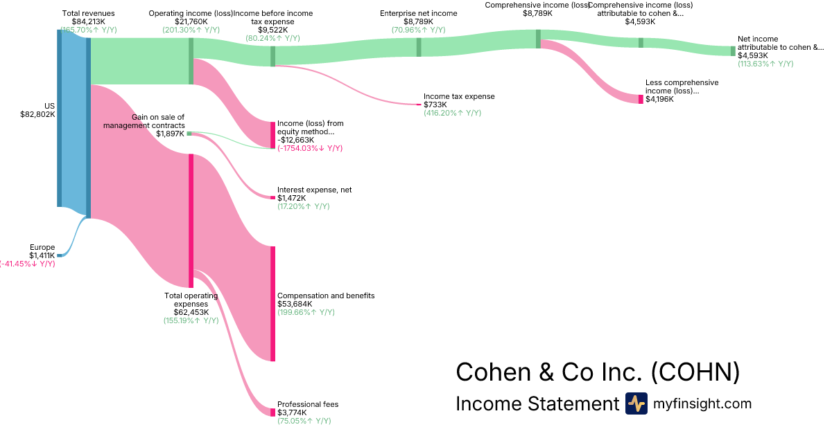 For the quarter ending 2025-09-30, COHN made $84,213K in revenue. $4,593K in net income. Net profit margin of 5.45%.