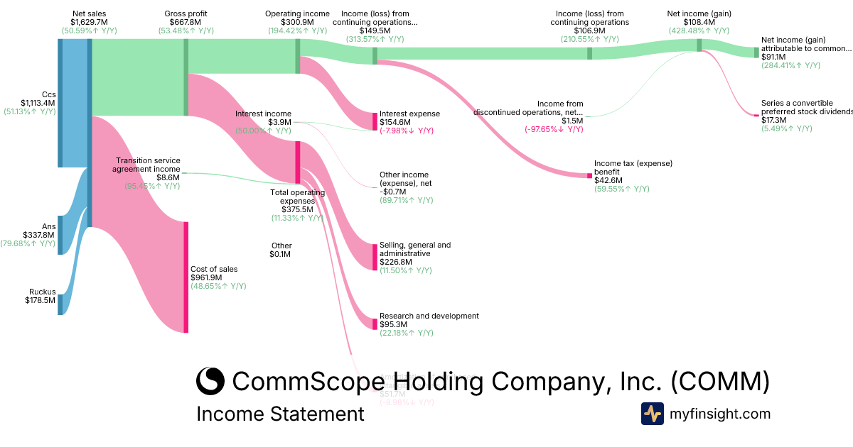 For the quarter ending 2025-09-30, COMM made $1,629.7M in revenue. $91.1M in net income. Net profit margin of 5.59%.