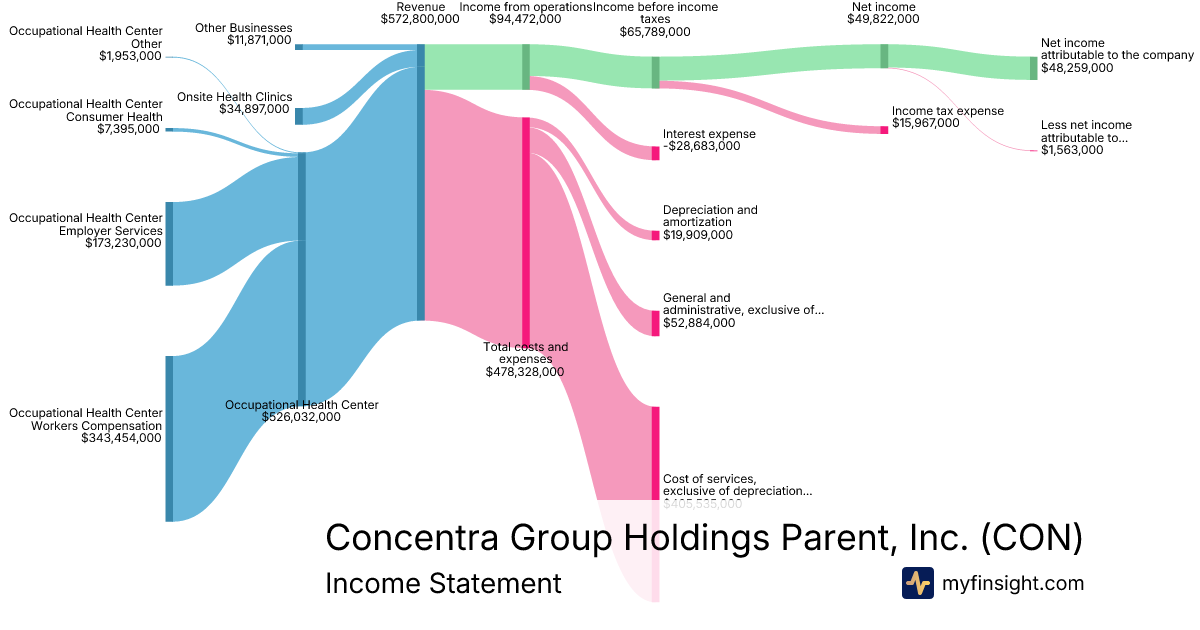 For the quarter ending 2025-09-30, CON made $572,800,000 in revenue. $48,259,000 in net income. Net profit margin of 8.43%.