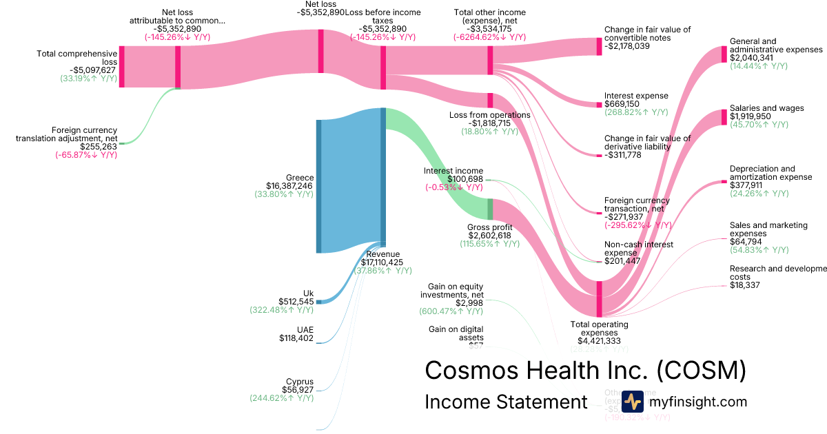 For the quarter ending 2025-09-30, COSM made $17,110,425 in revenue. -$5,097,627 in net income. Net profit margin of -29.79%.