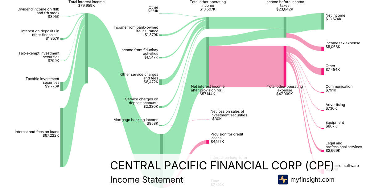For the quarter ending 2025-09-30, CPF made $159,163K in revenue. $18,574K in net income. Net profit margin of 11.67%.