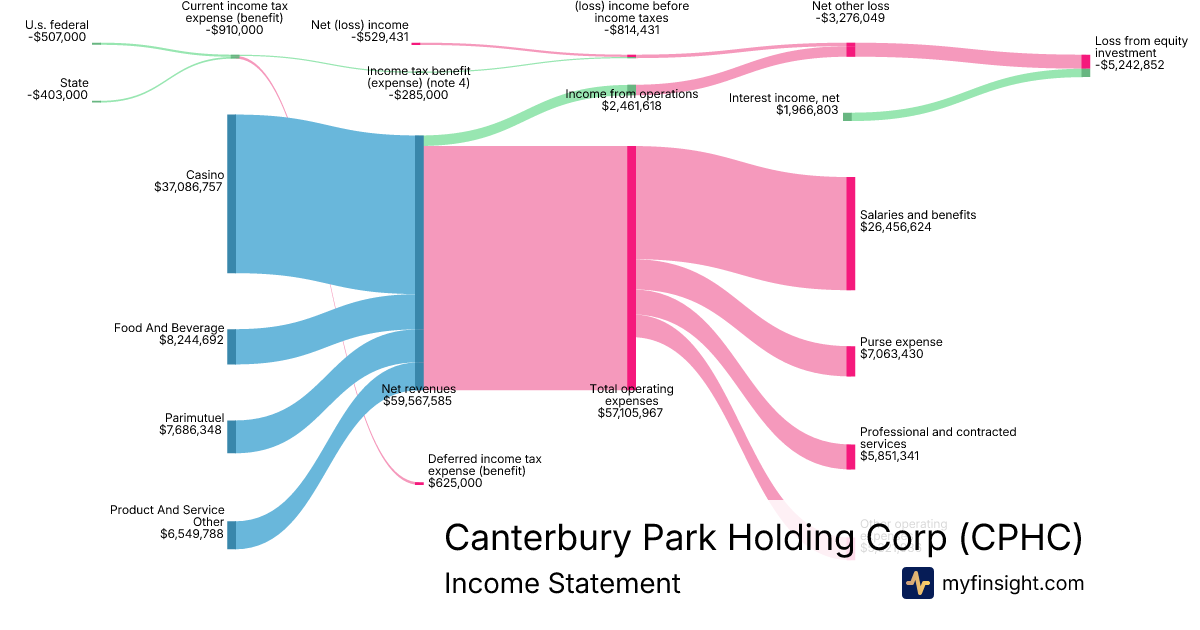 For the year ending 2025-12-31, CPHC made $59,567,585 in revenue. -$529,431 in net income. Net profit margin of -0.89%.