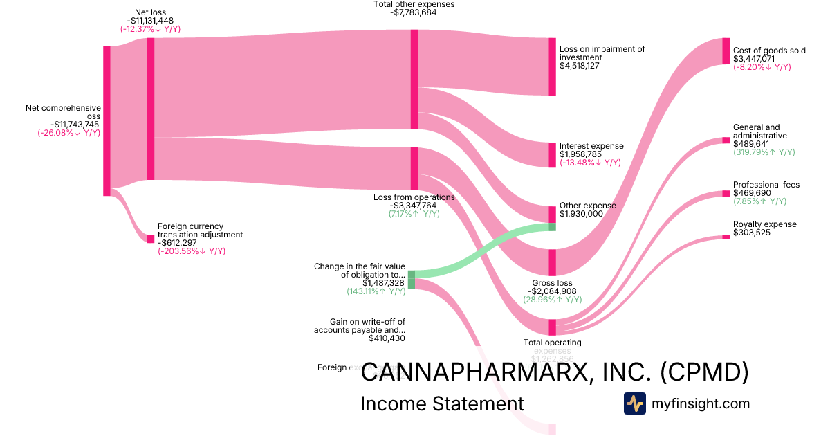 For the year ending 2025-12-31, CPMD made $1,362,163 in revenue. -$11,743,745 in net income. Net profit margin of -862.14%.