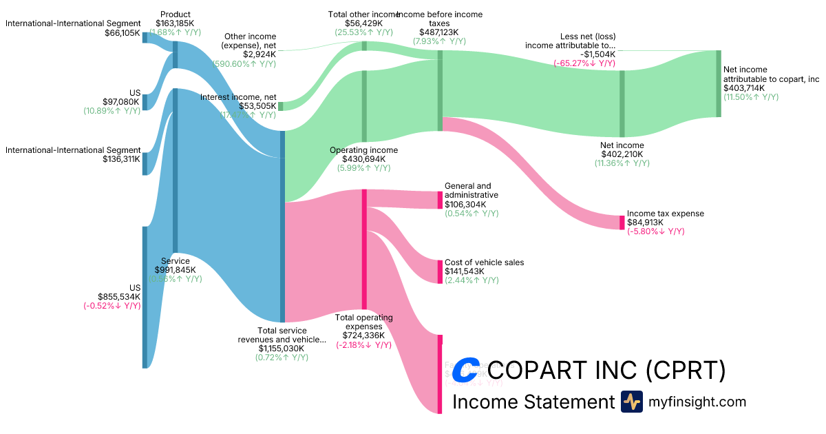 | Net income attributable to copart, inc | 403,714 | 406,609 | 387,400 | 362,086 |