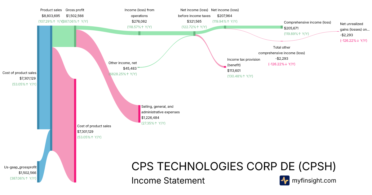 For the quarter ending 2025-09-27, CPSH made $8,803,695 in revenue. $205,671 in net income. Net profit margin of 2.34%.