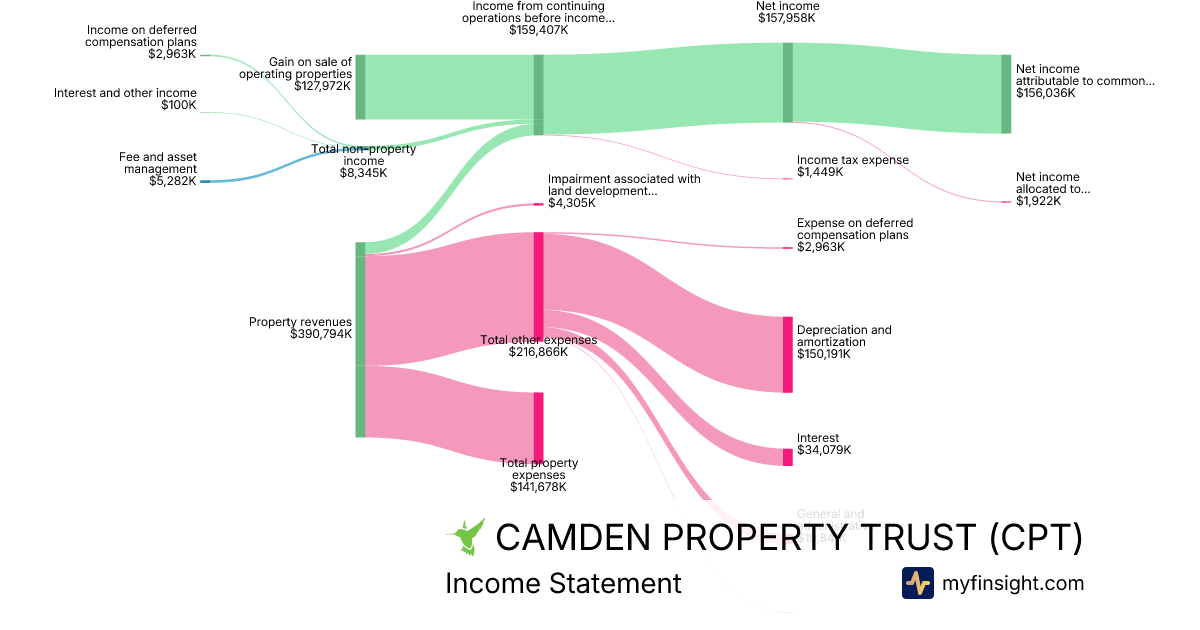 For the year ending 2025-12-31, CPT made $3,322,041K in revenue. $384,462K in net income. Net profit margin of 11.57%.
