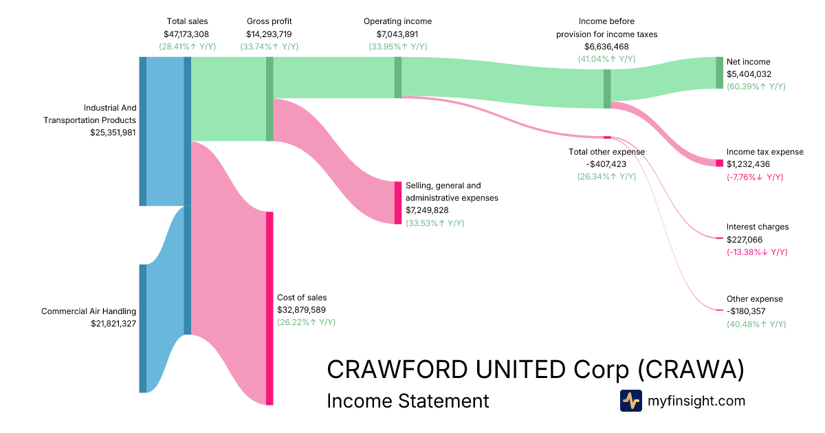 For the quarter ending 2025-09-30, CRAWA made $47,173,308 in revenue. $5,404,032 in net income. Net profit margin of 11.46%.
