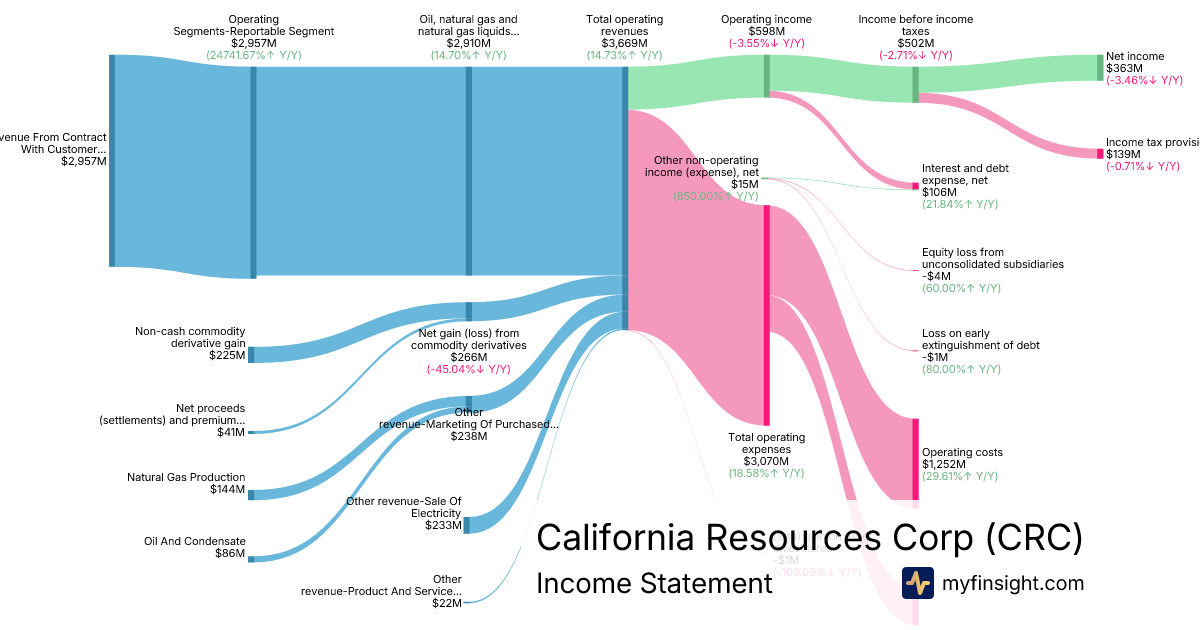 For the year ending 2025-12-31, CRC made $3,669M in revenue. $363M in net income. Net profit margin of 9.89%.