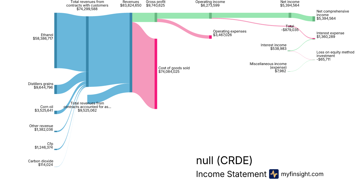 For the quarter ending 2024-06-30, CRDE made $83,824,650 in revenue. $5,394,564 in net income. Net profit margin of 6.44%.