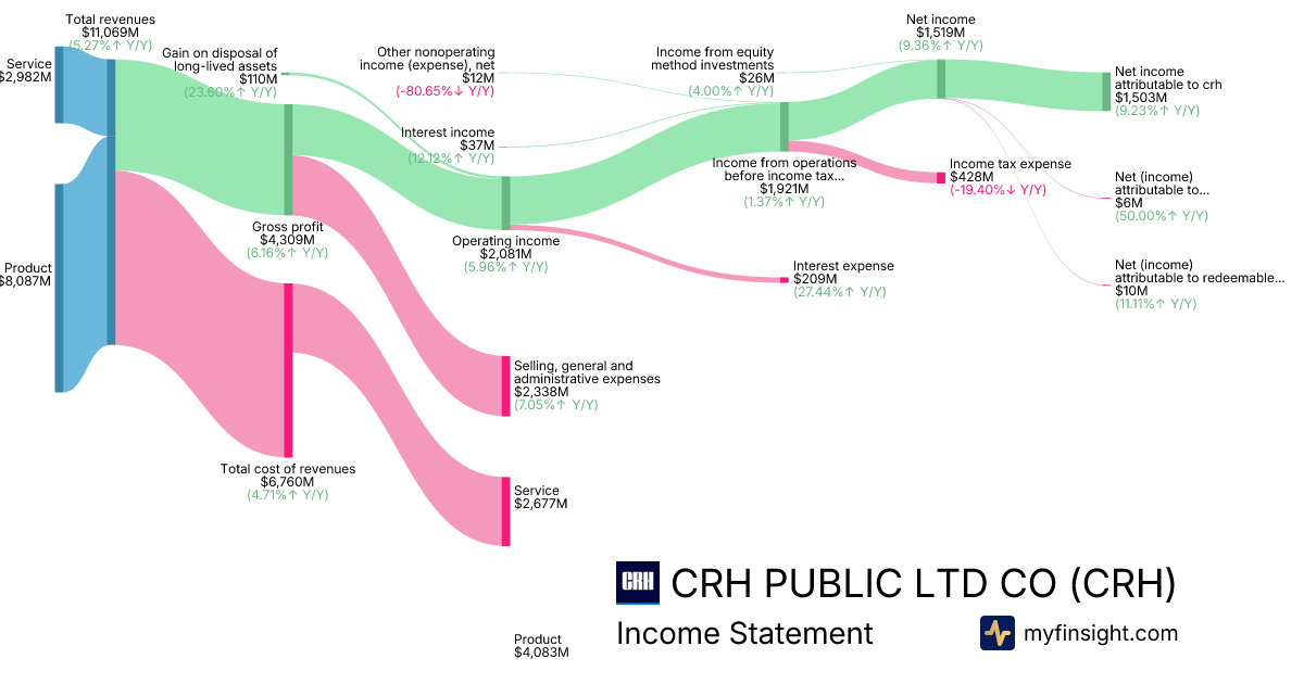 | Net income attributable to crh | 1,503 | 1,319 | -94 | 1,376 |