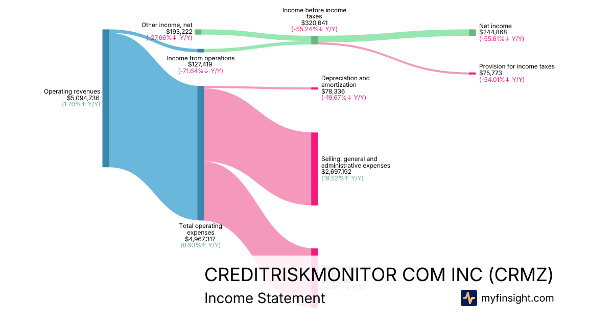 For the quarter ending 2025-09-30, CRMZ made $5,094,736 in revenue. $244,868 in net income. Net profit margin of 4.81%.