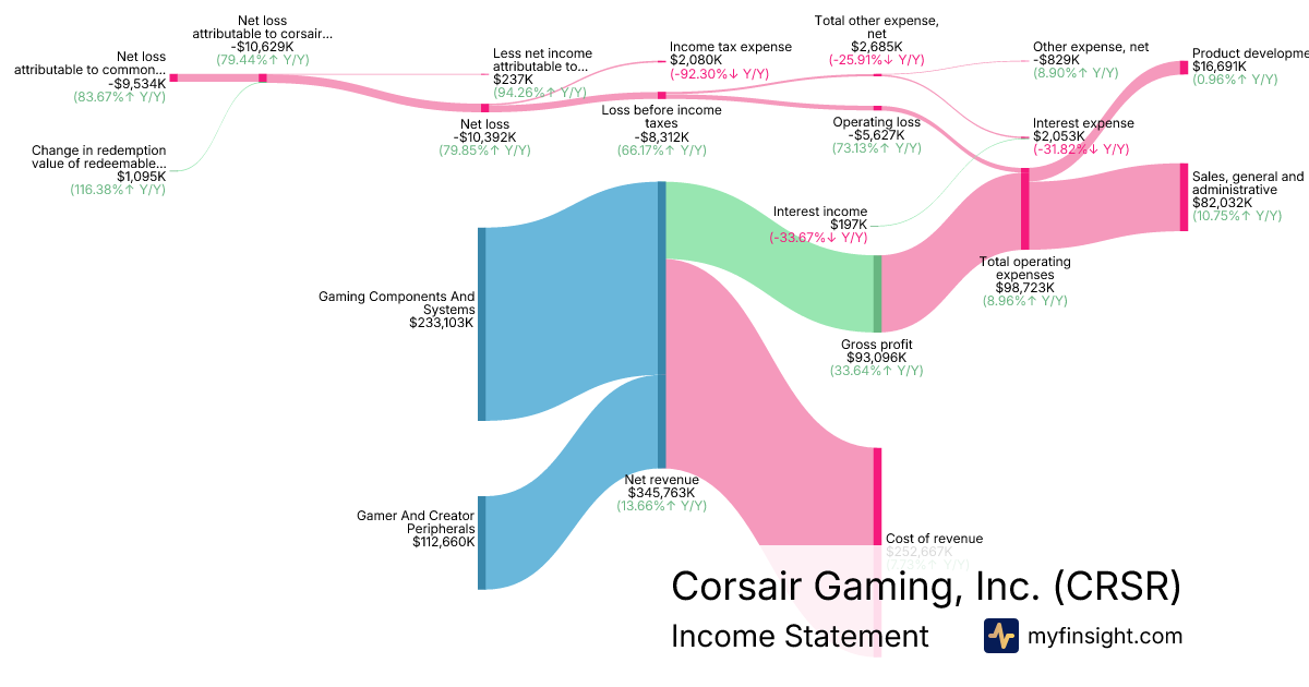 For the quarter ending 2025-09-30, CRSR made $345,763K in revenue. -$9,534K in net income. Net profit margin of -2.76%.