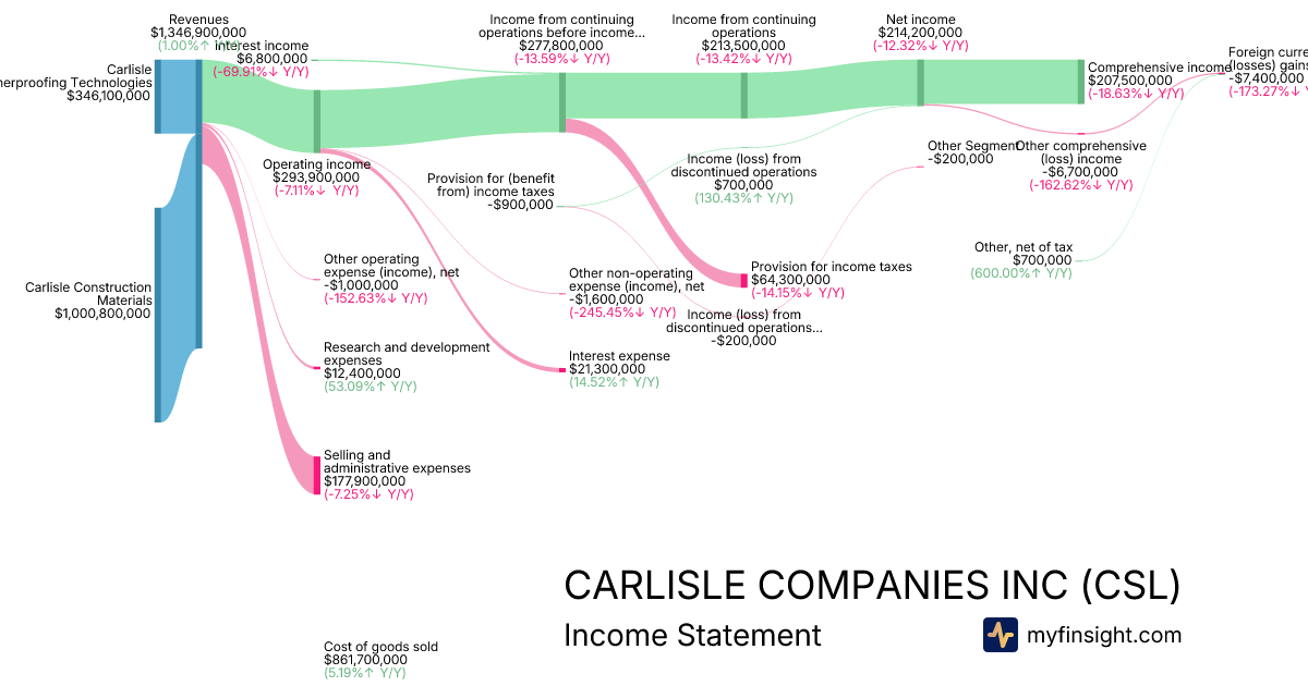 For the quarter ending 2025-09-30, CSL made $1,354,200,000 in revenue. $207,500,000 in net income. Net profit margin of 15.32%.