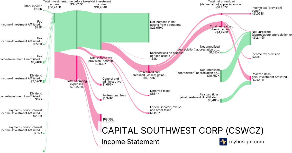 For the quarter ending 2025-09-30, CSWCZ made $97,158K in revenue. $25,619K in net income. Net profit margin of 26.37%.