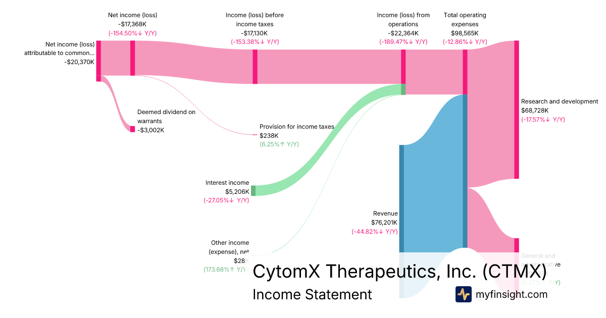 For the year ending 2025-12-31, CTMX made $76,201K in revenue. -$20,370K in net income. Net profit margin of -26.73%.