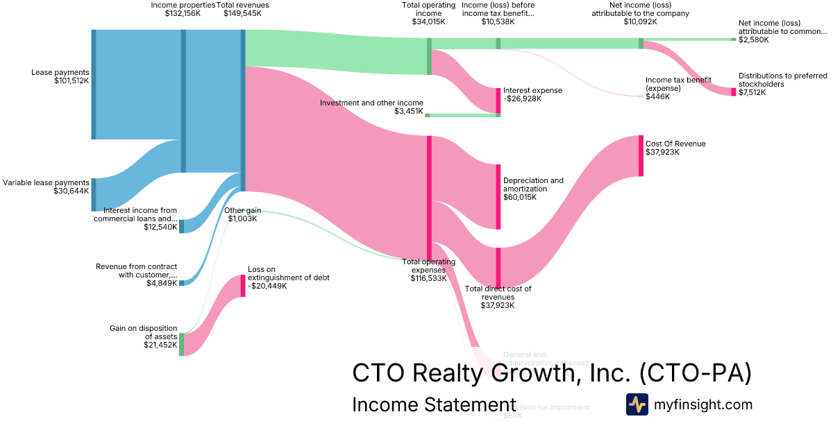 For the year ending 2025-12-31, CTO-PA made $149,545K in revenue. $2,580K in net income. Net profit margin of 1.73%.