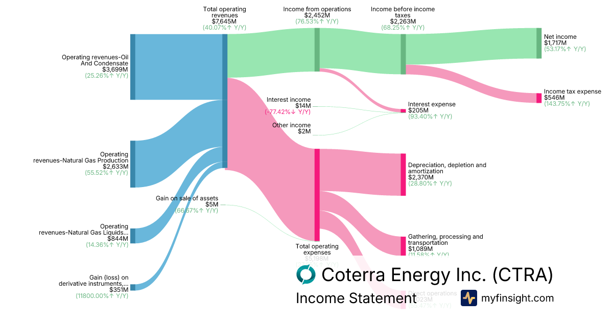 For the year ending 2025-12-31, CTRA made $7,645M in revenue. $1,717M in net income. Net profit margin of 22.46%.