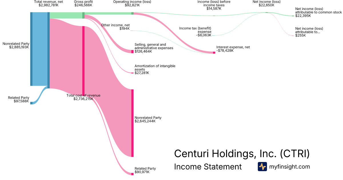 For the year ending 2025-12-28, CTRI made $2,982,781K in revenue. $22,395K in net income. Net profit margin of 0.75%.