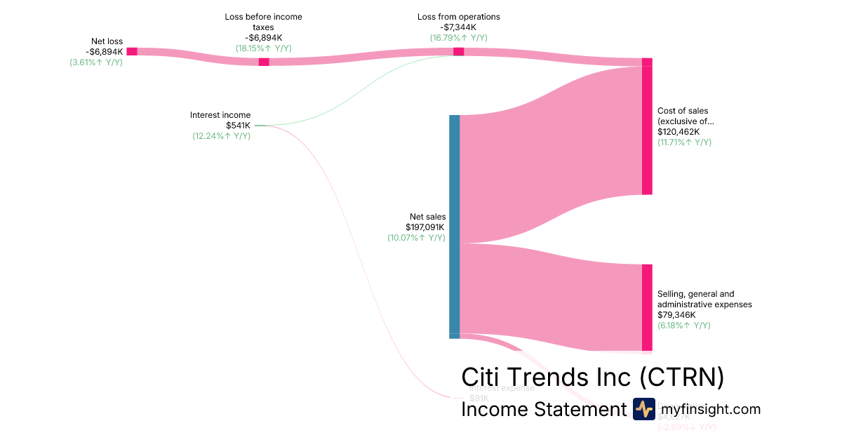For the quarter ending 2025-11-01, CTRN made $197,091K in revenue. -$6,894K in net income. Net profit margin of -3.50%.