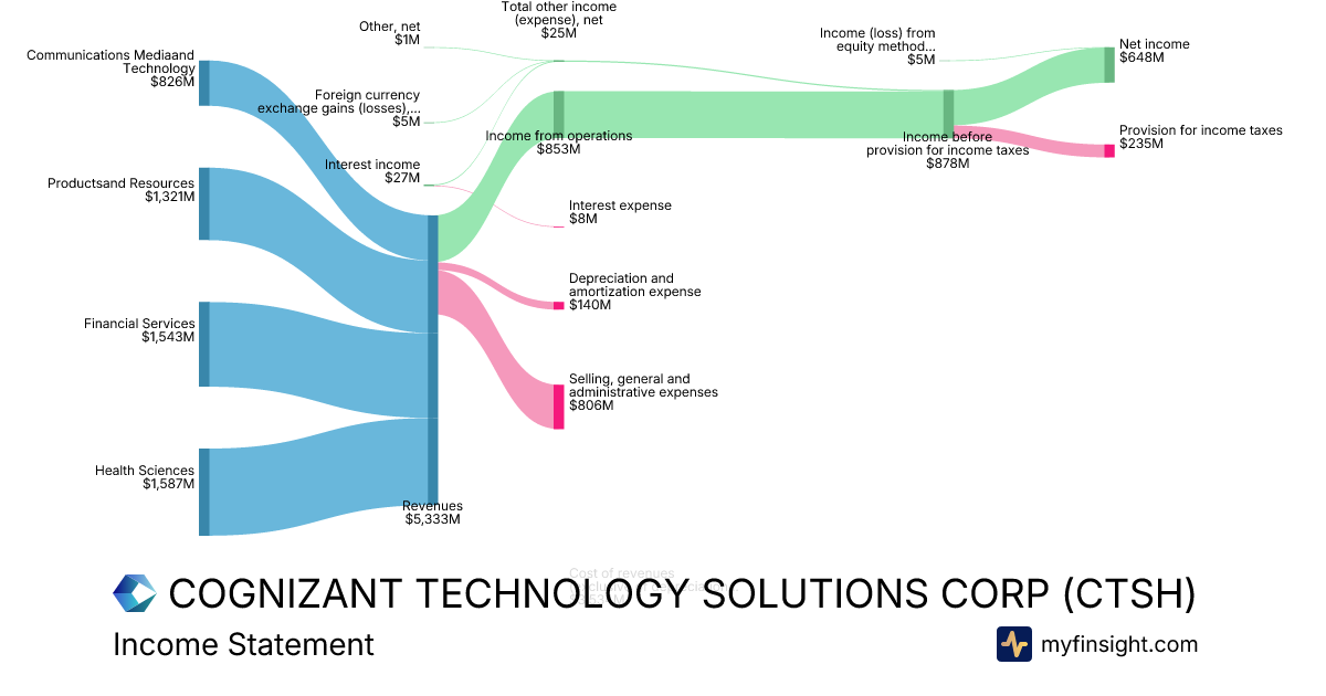 For the year ending 2025-12-31, CTSH made $21,108M in revenue. $2,230M in net income. Net profit margin of 10.56%.