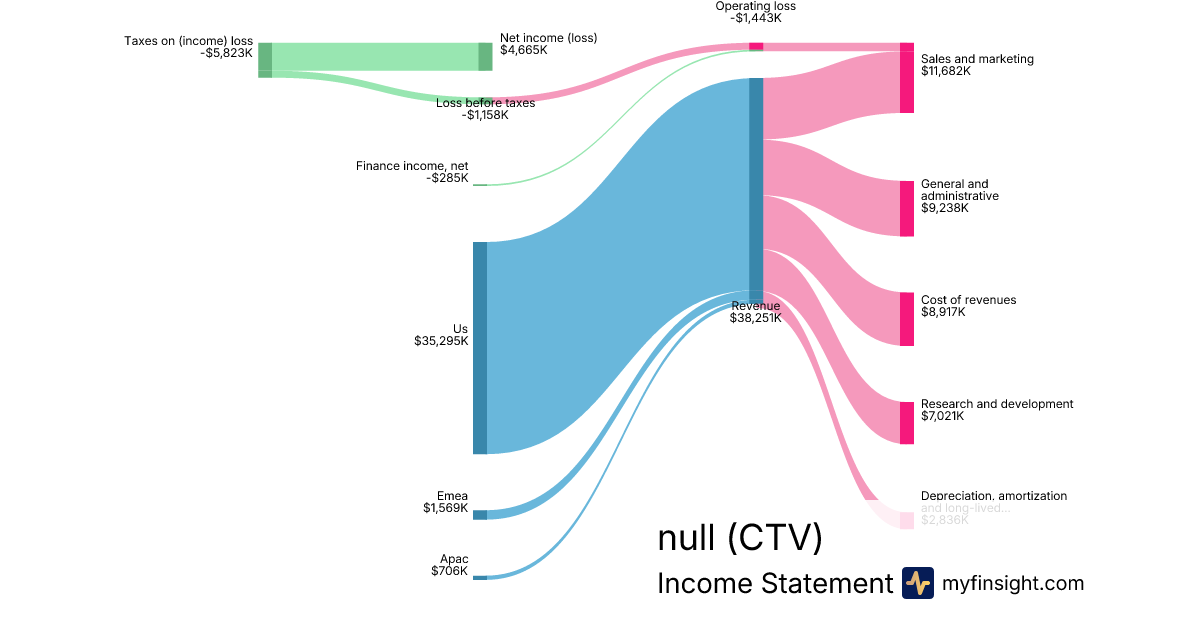 For the quarter ending 2024-09-30, CTV made $38,251K in revenue. $4,665K in net income. Net profit margin of 12.20%.