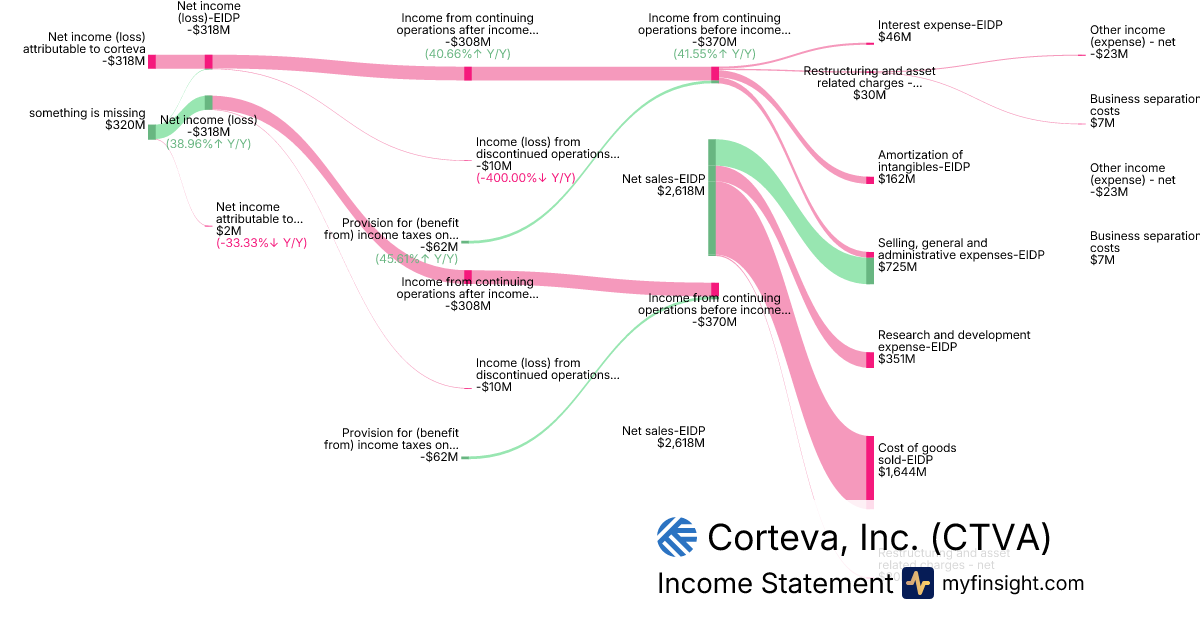 | Net income (loss) attributable to corteva | -318 | 1,314 | 655 | -524 |