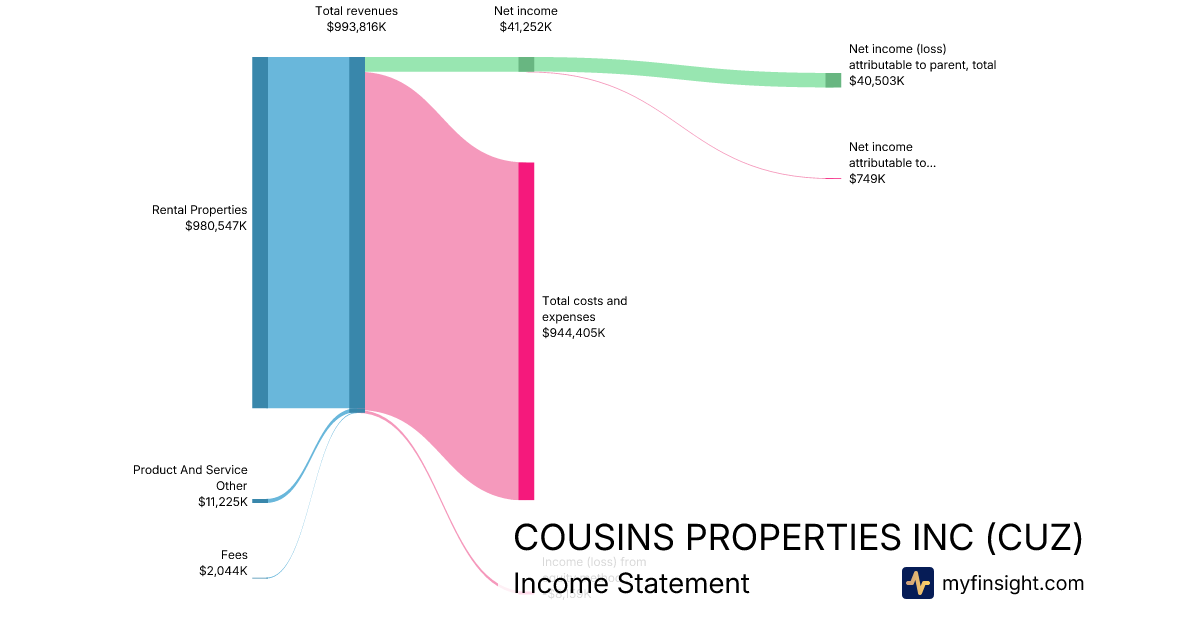 For the year ending 2025-12-31, CUZ made $993,816K in revenue. $40,503K in net income. Net profit margin of 4.08%.