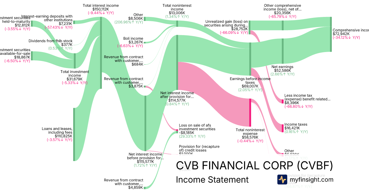 For the quarter ending 2025-09-30, CVBF made $293,166K in revenue. $72,942K in net income. Net profit margin of 24.88%.