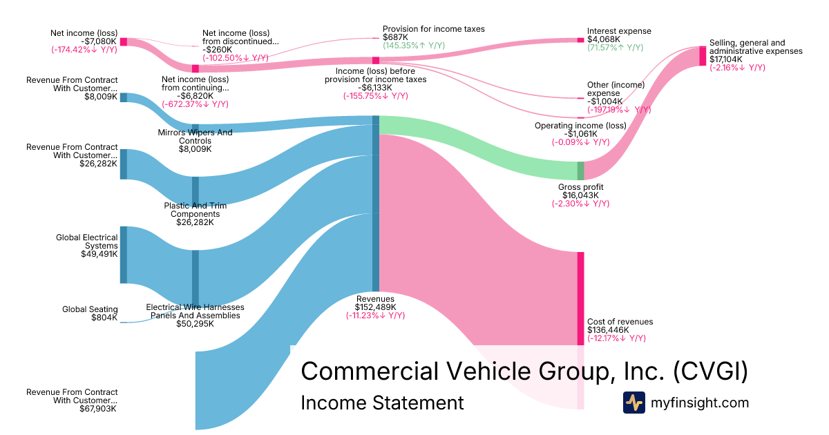 For the quarter ending 2025-09-30, CVGI made $152,489K in revenue. -$7,080K in net income. Net profit margin of -4.64%.