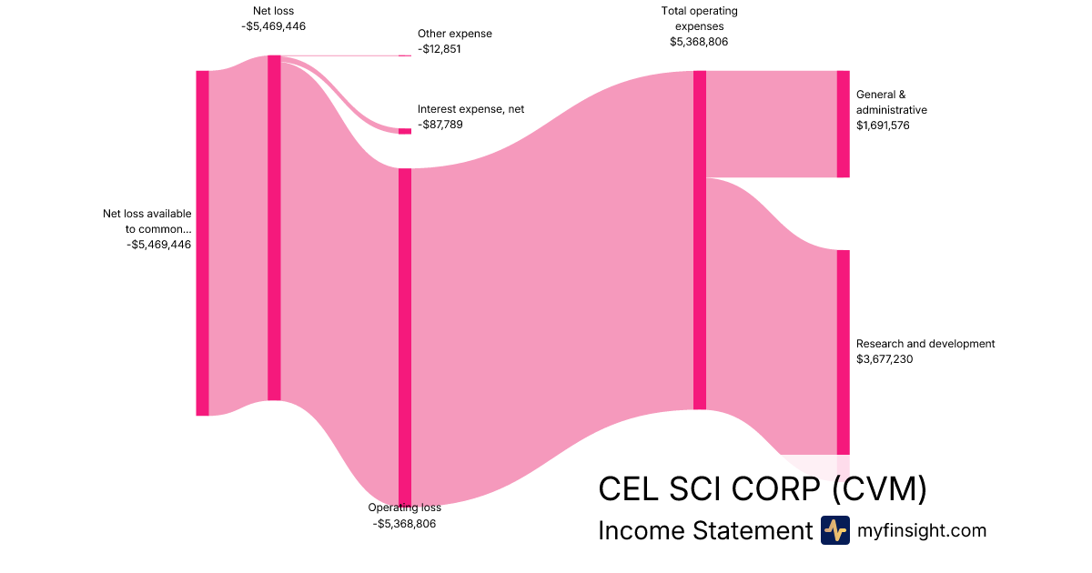 For the quarter ending 2025-12-31, CVM made $5,368,806 in revenue. -$5,469,446 in net income. Net profit margin of -101.87%.