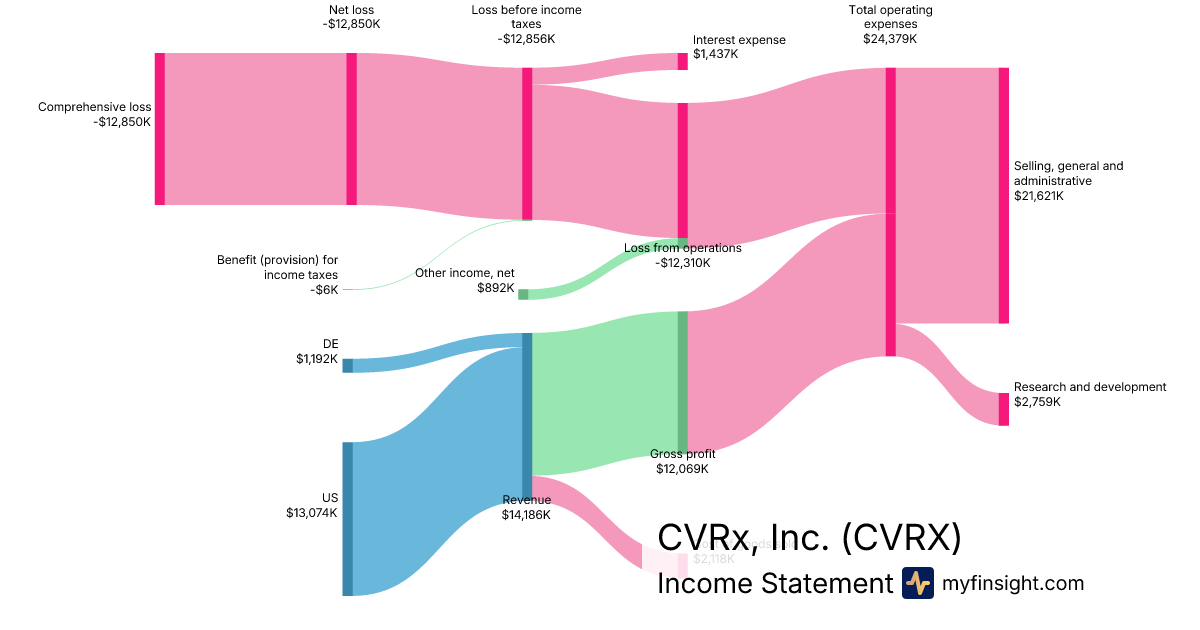 For the year ending 2025-12-31, CVRX made $56,651K in revenue. -$53,304K in net income. Net profit margin of -94.09%.