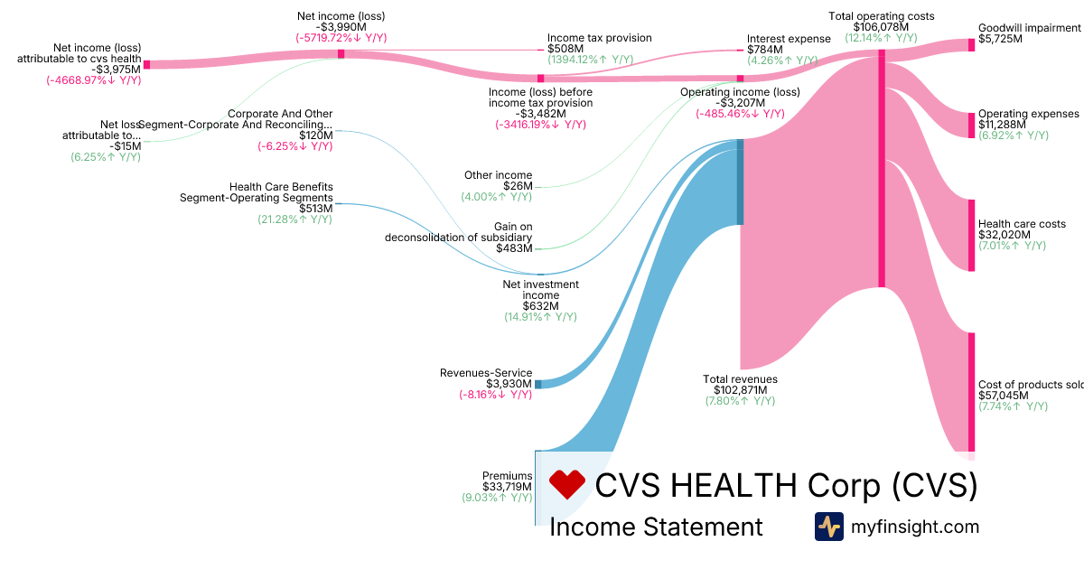 | Net income (loss) attributable to cvs health | -3,975 | 1,021 | 1,779 | 87 |