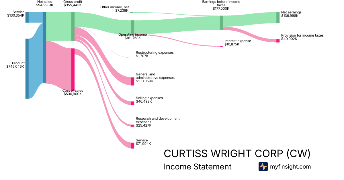 For the year ending 2025-12-31, CW made $3,498,372K in revenue. $484,228K in net income. Net profit margin of 13.84%.